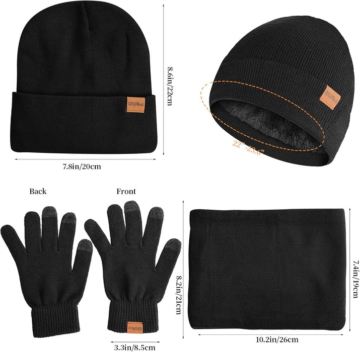 Winter Beanie Hat Scarf Gloves Set for Men Women, Warm Knitted Hat Fleece Lined Circle Neck Warmer Touchscreen Gloves